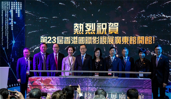 2019年第23届香港国际影视展广东馆由广东省广播电视局、广东省电影局共同主办,组织了广东省内40余家影视机构联合以“广东馆”的形式第五次亮相香港国际影视展。3月18日下午,省委宣传部常务副部长、省电影局局长白洁,省广播电视局局长刘小毅,省电影局副局长陈怀春等领导嘉宾为广东馆“揭幕”。还有粤港澳三地传媒机构、影视制作公司、网络视听服务机构、行业协会等有关人士参加了开馆仪式。